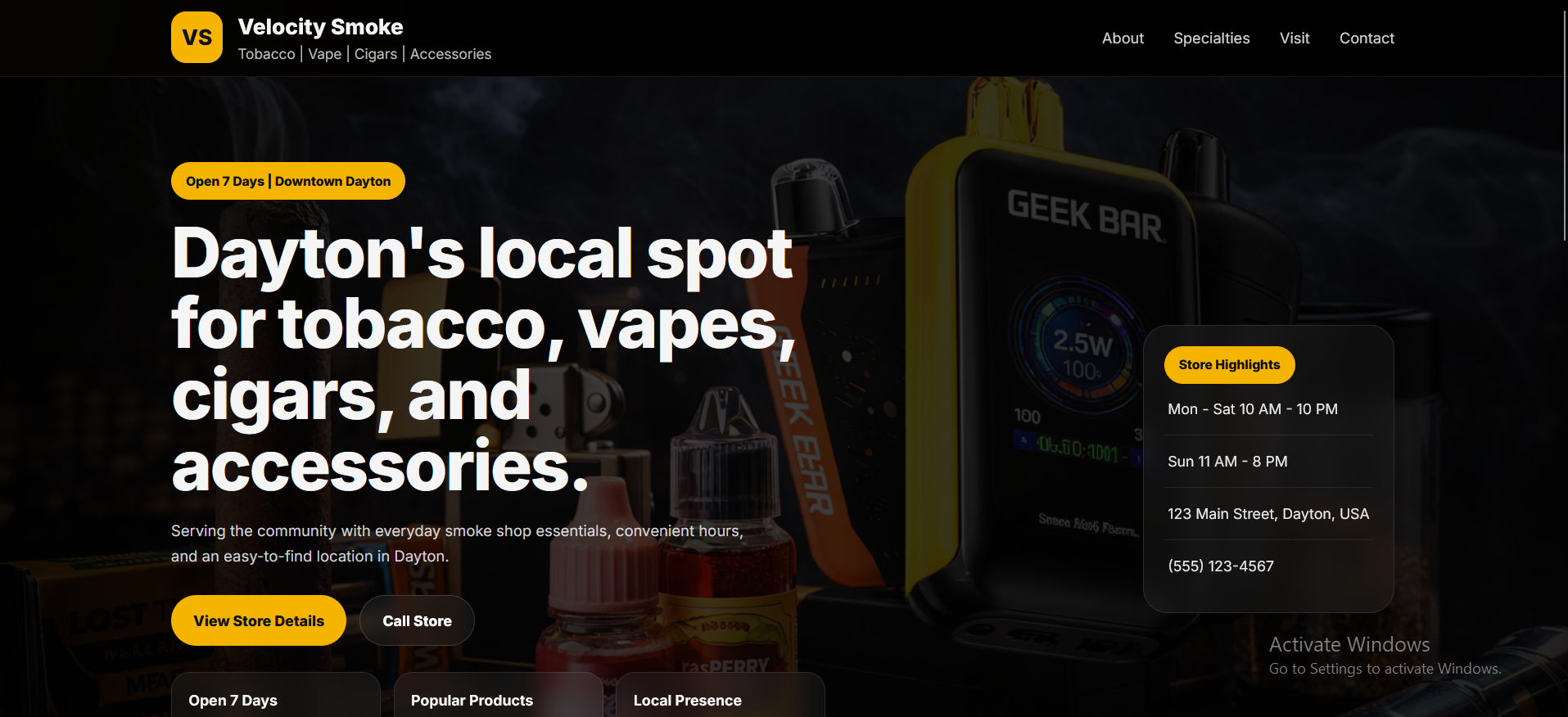 Concept DemoModern smoke shop concept website designed to elevate brand presence, highlight products, and attract local customers in Dayton.